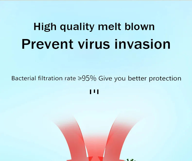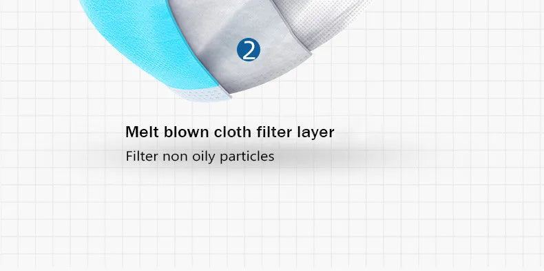 😷 3-Layer Protection: Outer non-woven layer, melt-blown filter, and soft inner layer for effective filtration.