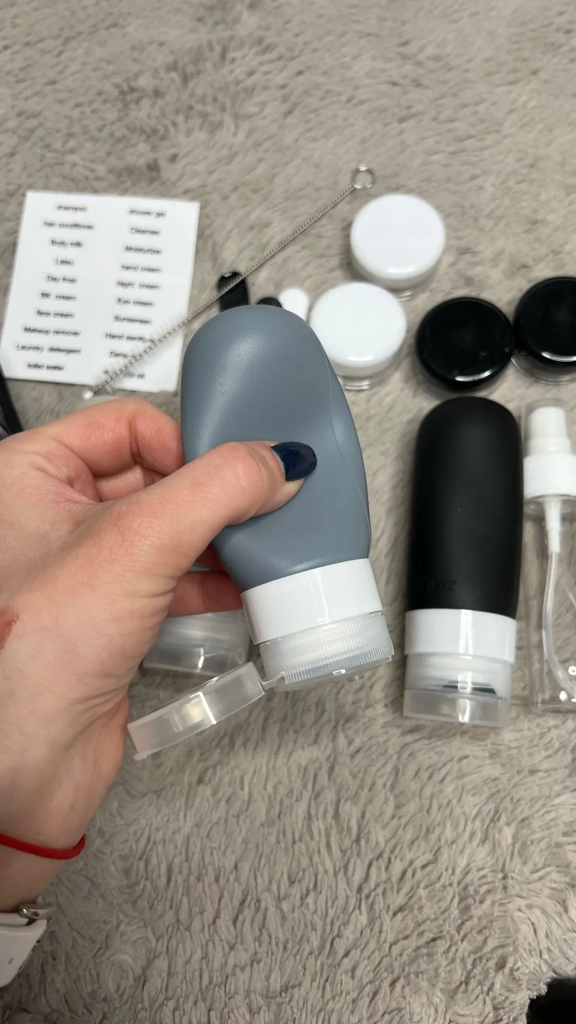 - Feature: Travel bottle set, essential travel gear, viaje, botellas para viaje, refillable travel bottles, travel containers, botes rellenables para viaje.