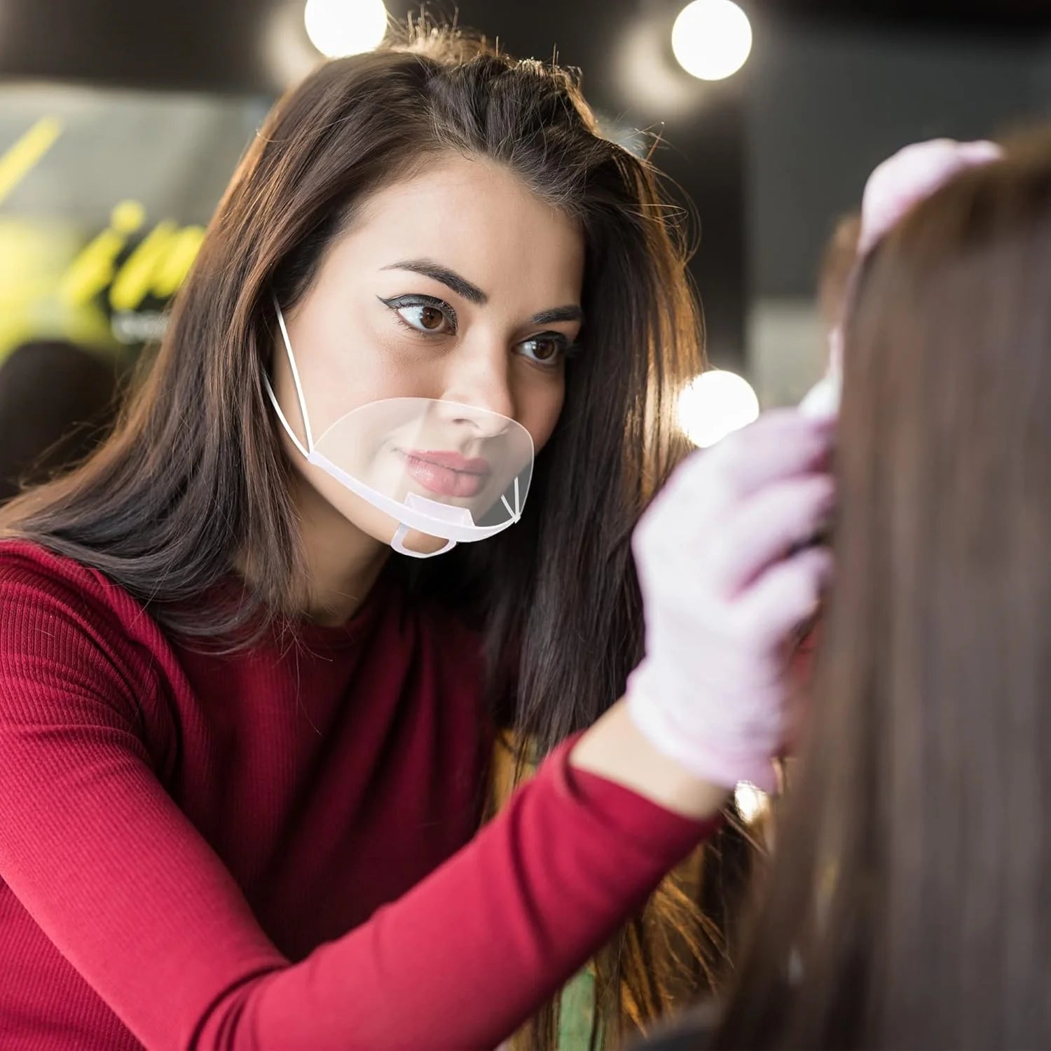 Stay protected while maintaining clear communication with this 5-pack of Reusable Transparent Anti-Fog Face Shields. Designed to cover the mouth and lower face, these lightweight shields are ideal for use in restaurants, schools, salons, tattoo studios, and more. The clear, anti-fog design ensures full visibility while helping to block droplets and maintain hygiene.