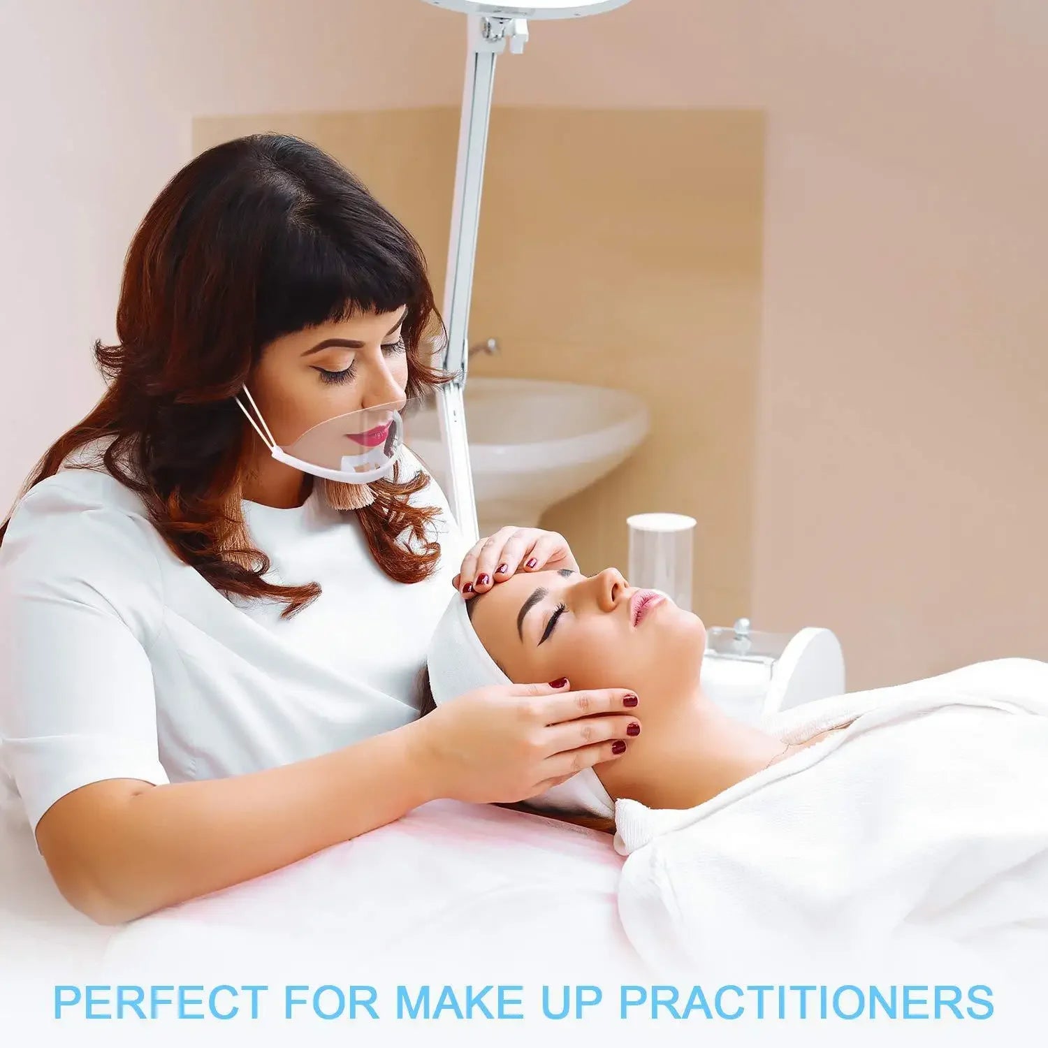 Stay protected while maintaining clear communication with this 5-pack of Reusable Transparent Anti-Fog Face Shields. Designed to cover the mouth and lower face, these lightweight shields are ideal for use in restaurants, schools, salons, tattoo studios, and more. The clear, anti-fog design ensures full visibility while helping to block droplets and maintain hygiene.