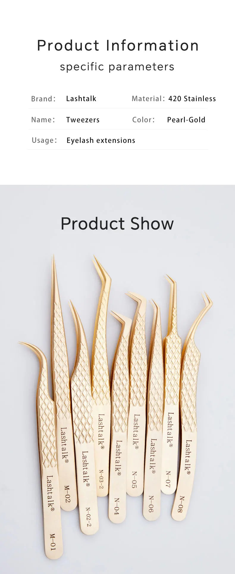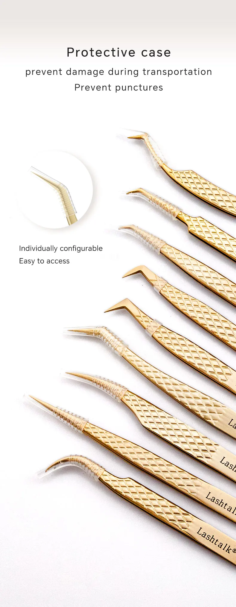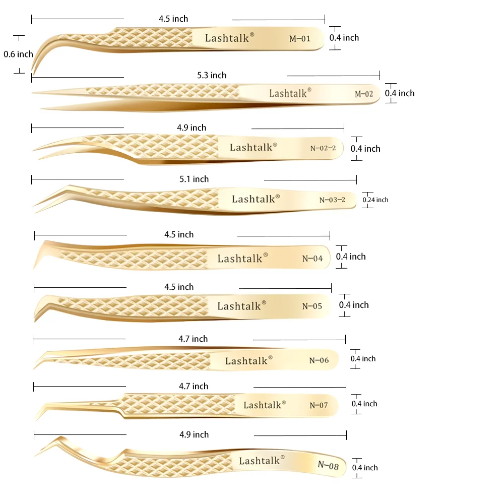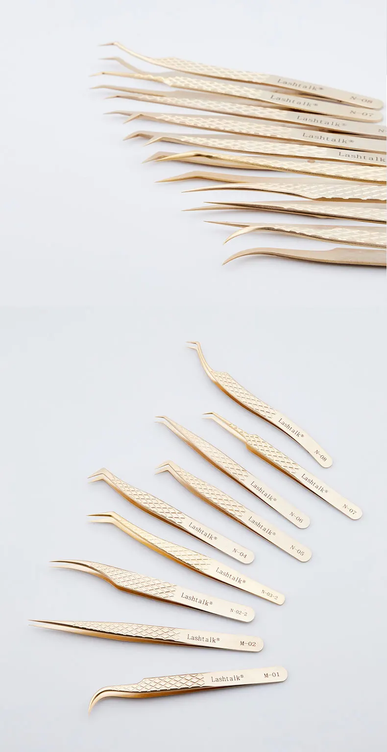 The Lashtalk Eyelash Extension Tweezers by Nagaraku are expertly crafted from high-quality stainless steel for durability, precision, and control during lash application. Their non-magnetic design prevents lash interference, while the finely aligned tips make them ideal for isolating and applying individual or volume lash extensions.
