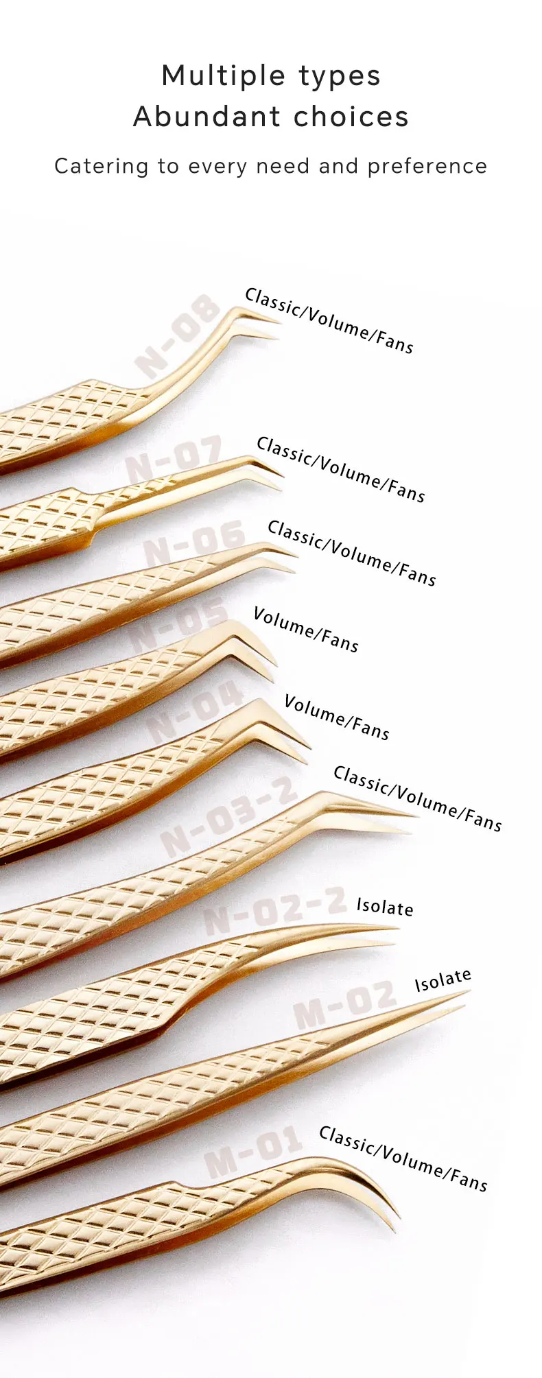 Professional-grade tweezers designed for creating volume lash fans, isolating individual lashes, and picking up premade lash fans with precision and ease.